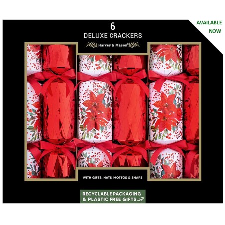 A classic poinsettia design paired with a red diamond pattern foiled cracker.